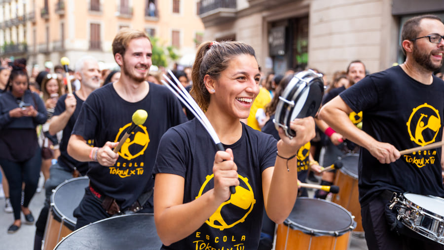 ASSOCIACIO TOQUEM PER TU BARCELONA ofrece talleres presenciales de percusión y batucada en Barcelona.